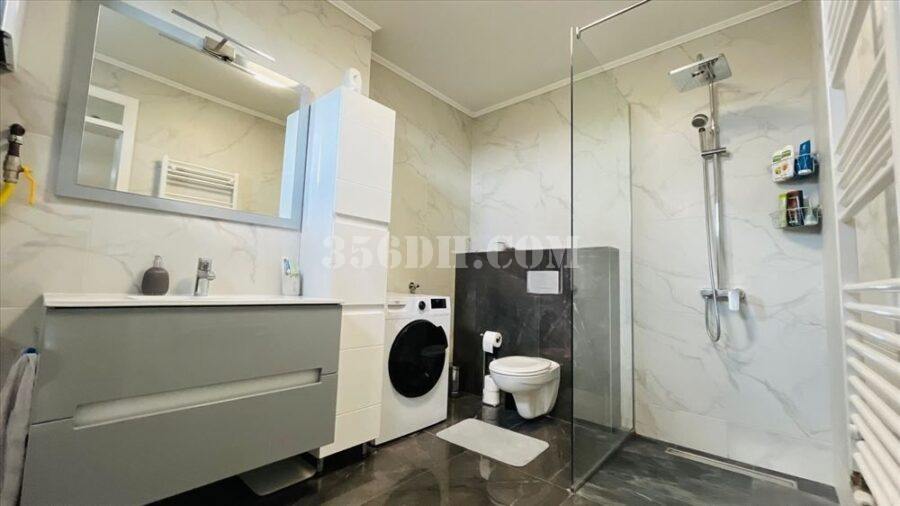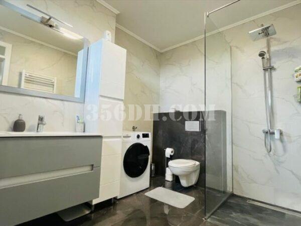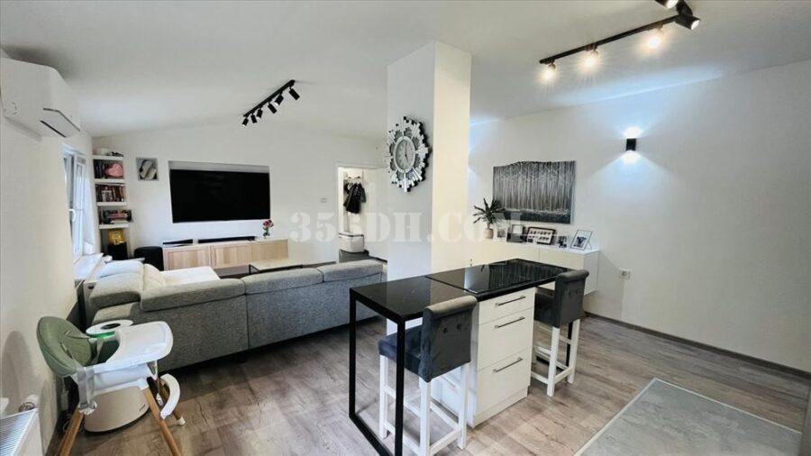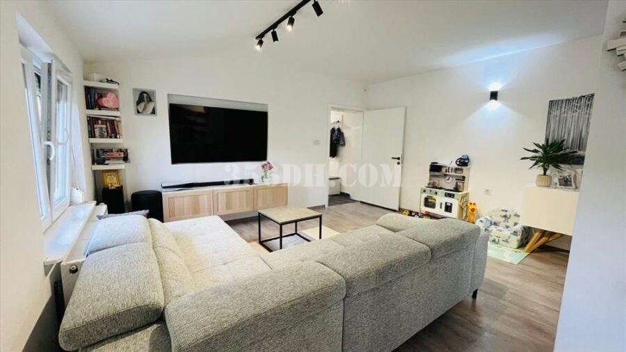 房屋共两层,底层建于2000年代,二层于2022年全新装修。二层设施齐全,包括门厅、宽敞的客厅(带厨房)、两间卧室、一间大浴室,并安装了燃气供暖、地暖和暖气片。底层设有客厅、厨房、两间卧室、一间浴室和一个储藏室。院内还有一个41平方米的空间,可用作车库。