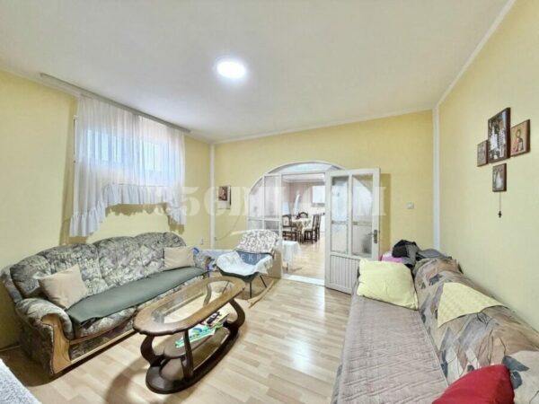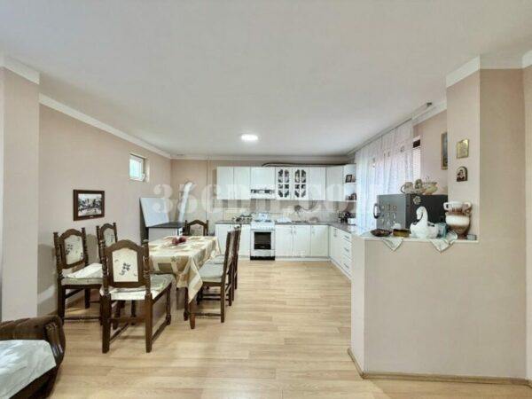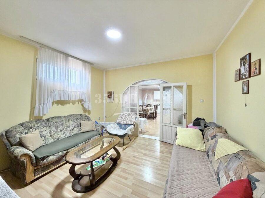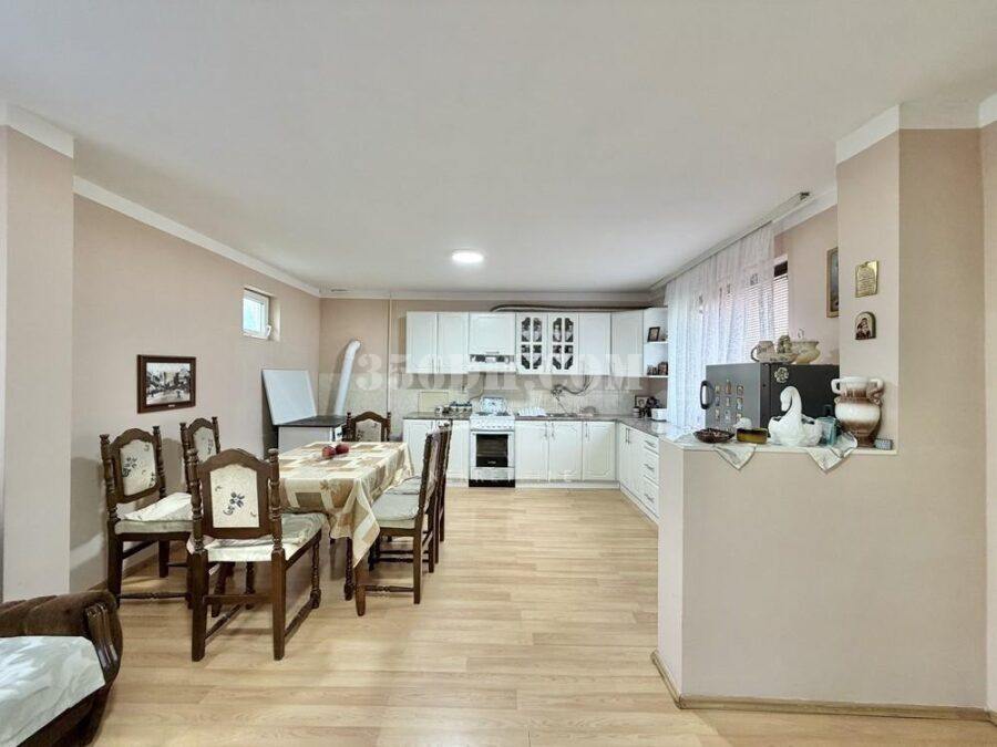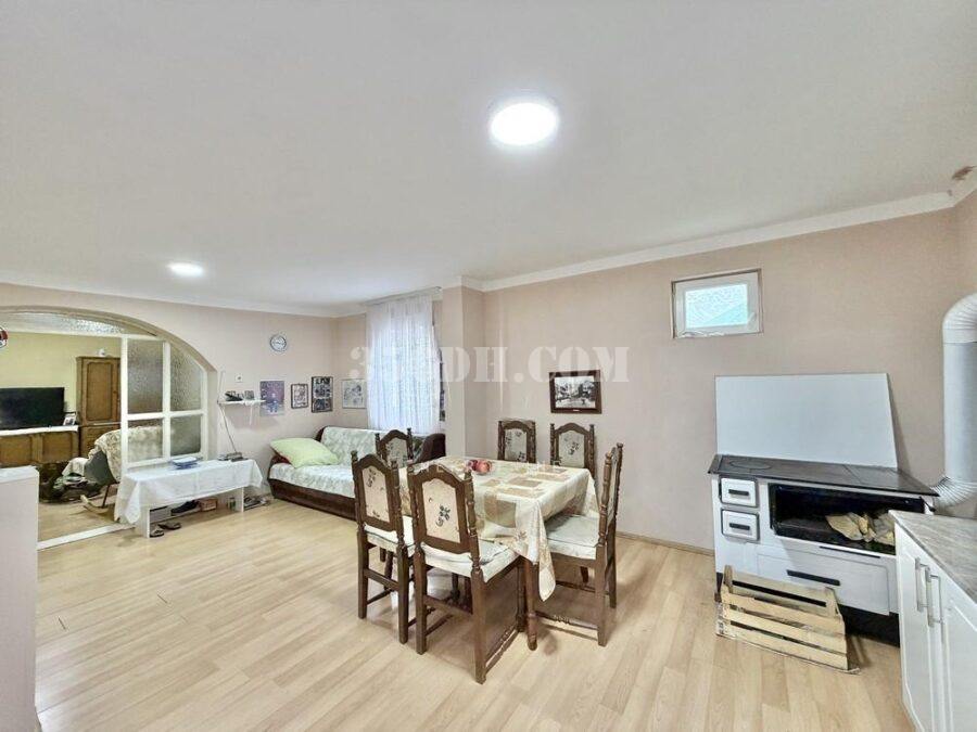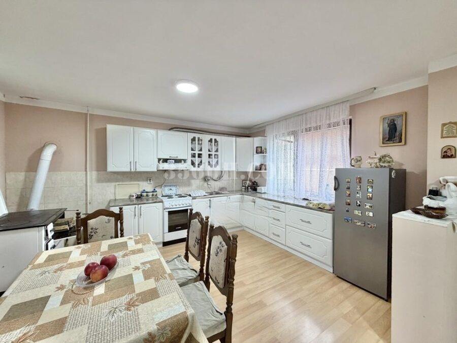 这是一栋宽敞的单层住宅,有两个入口。屋内设有一个宽敞的厨房、客厅、三间卧室、一个储藏室、一个宽敞的走廊和一个浴室。房屋扩建部分还有一个29平方米的商铺,可直接通往街道。地块四周有围栏,面向两条街道。院内还建有一栋住宅兼商业建筑。房屋位于村庄环境优美的区域。