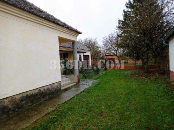 该住宅建于20世纪70年代,包括宽敞的餐厅、厨房、客厅以及两间临街卧室。此外,还配有功能齐全的浴室。该住宅有两个入口,因此可以分隔成两个独立的居住单元。前边是院子,后部是花园和果园。
