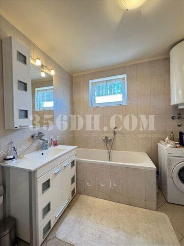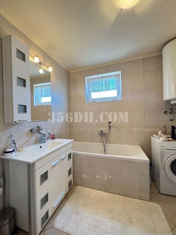一楼设有夏季厨房和卫生间。一层面积为95平方米,包括两间房、客厅、厨房、浴室和一个大露台。第二层是一个面积相同的开放式空间结构。一层通过燃气锅炉和散热器供暖,二层则采用地暖和散热器相结合的方式供暖,所有家具均包含在价格内。