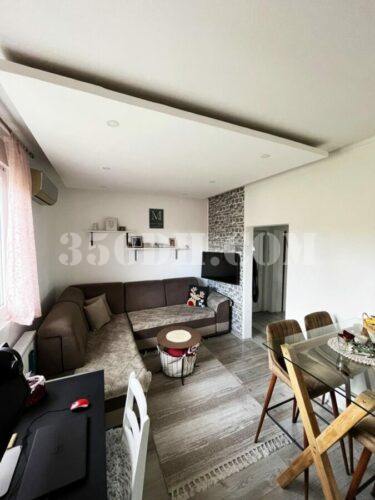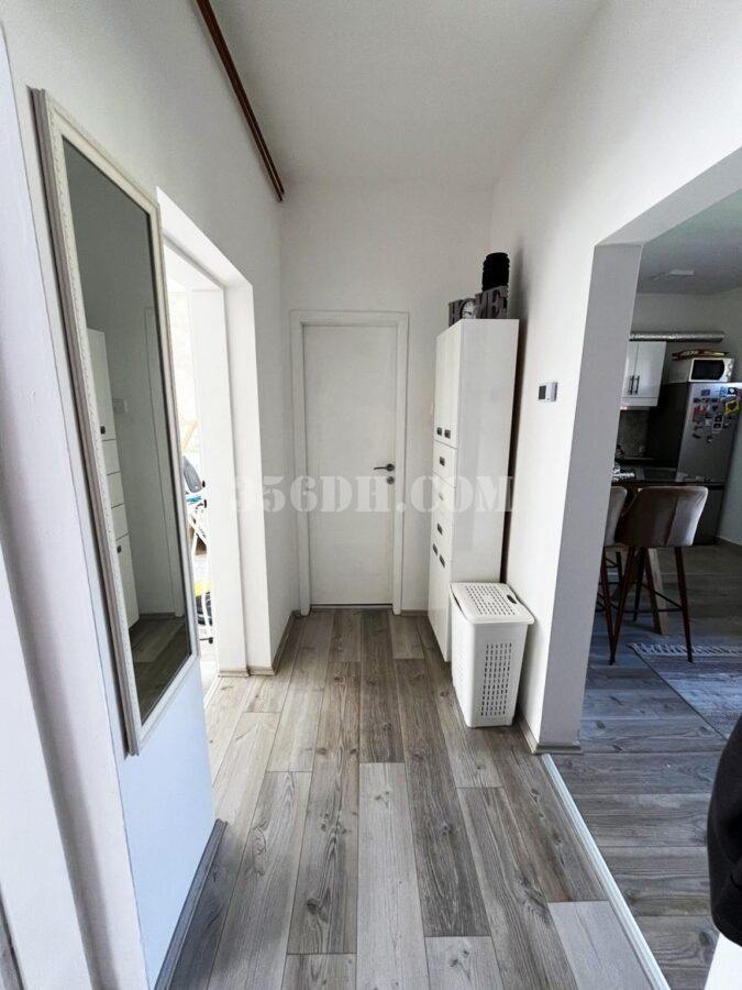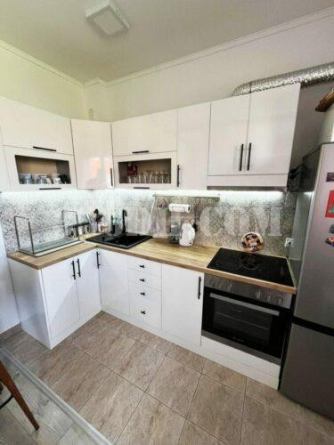 公寓为两室两厅,厨房、餐厅和客厅连为一体。后加建了门厅,使公寓实际面积达到60平方米,登记面积为51平方米。所有管道和设备均已翻新,屋顶和墙体均已安装隔热层,实木地板上铺设了强化复合地板,并安装了带卷帘和纱窗的铝合金窗户。地暖采用燃气锅炉和散热器。厨房设施齐全,公寓出售时包含家具和电器,但不包括儿童家具(床、桌子、婴儿床)。