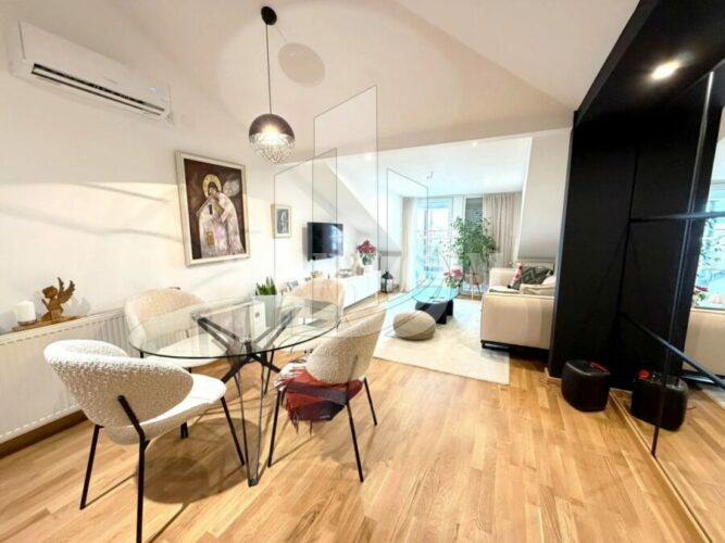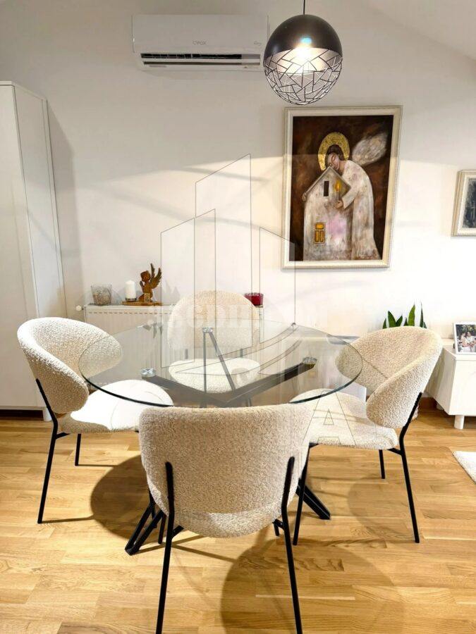 公寓面积 46 平方米,位于新建住宅楼的四楼,设计经典。其布局极其合理,最大限度地利用了空间,确保日常生活舒适便捷。公寓包括入口门厅、与餐厅和厨房相连的客厅、舒适的卧室、露台和浴室。公寓采用中央电暖气,有效控制能源成本,并配备空调。由于大楼为新建建筑,公寓无需额外投资。公寓以“交钥匙”方式出售,包含照片中所示的所有家具,未来的业主可立即入住,无需额外费用。大楼设有停车位,未来的业主也将获得一个专属停车位。