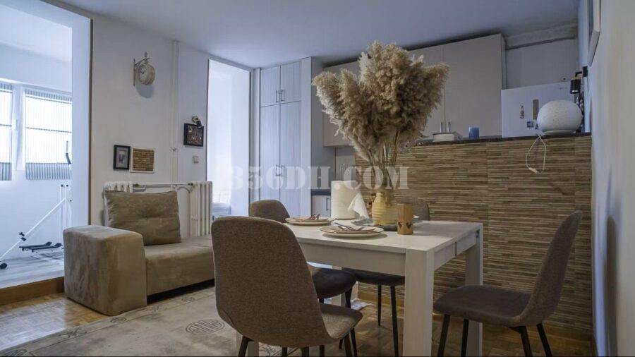 一套位于塞尔维亚首都贝尔格莱德自治市之一的丘卡里查一房一厅43㎡公寓出租,在一栋5层建筑的二楼(提示:欧洲的二楼即是三楼,0楼是1楼即是地面层),2022年翻新过的较新公寓,免房屋中介佣金。电梯、对讲机、家具家电齐全,集中公共供暖,拎包入住。