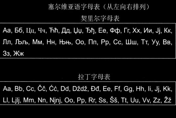 而反向翻译,塞尔维亚语就很难输入,因为塞尔维亚语有两套书写系统,一套是西里尔字母(官方使用)、一套是拉丁字母(图片上方为西里尔字母,下方则是拉丁字母),所以我们可以使用英文键盘输入拉丁字母,美中不足有一些字母上的符号不易输入,但使用Google 翻译长按字母会出现符号。(见图)